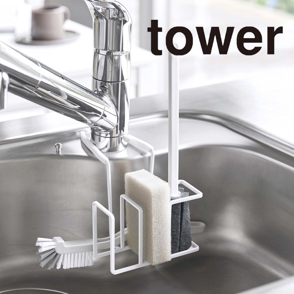 tower 蛇口にかけるスポンジ&ブラシホルダー タワー ホワイト 5080 山崎実業