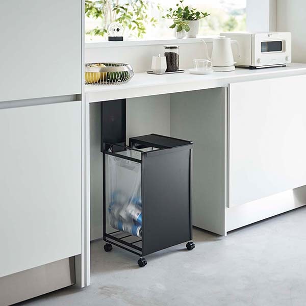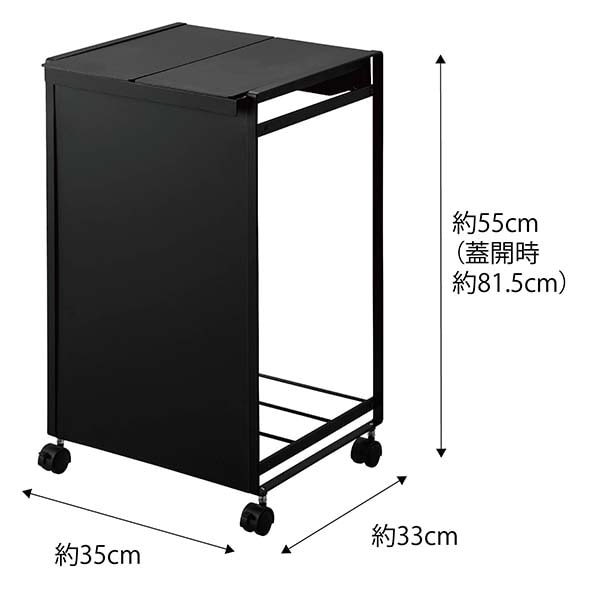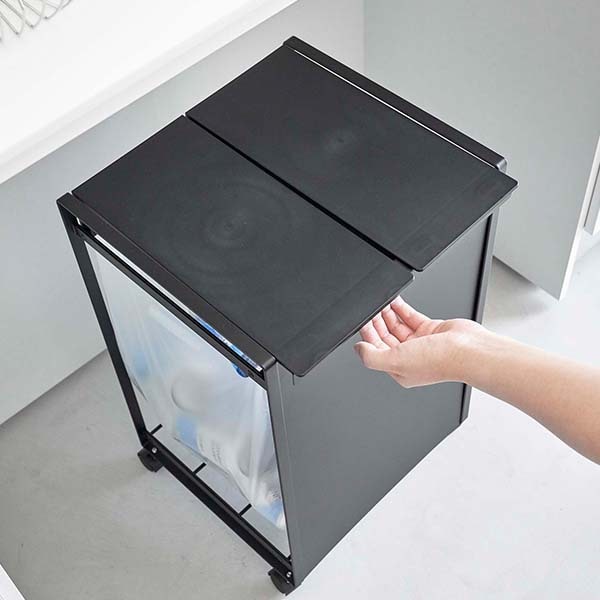 レジ袋を隠して分別できるスタイリッシュな蓋付き分別ダストワゴン