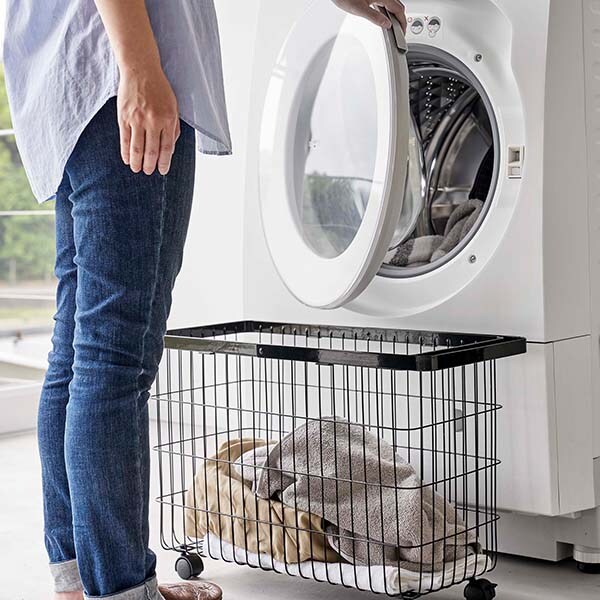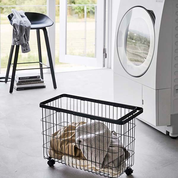 洗濯機の幅に合うワイドなキャスター付きランドリーバスケット
