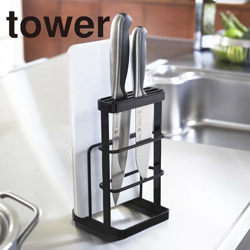 tower キッチンシリーズ カッティングボード&ナイフスタンド タワー ブラック 6776 まな板包丁立て キッチン収納