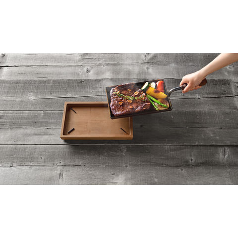 調理してそのまま食卓へ。手軽に使える片手ハンドルの極厚鉄板。そのまま食卓でアツアツを楽しむことができます。