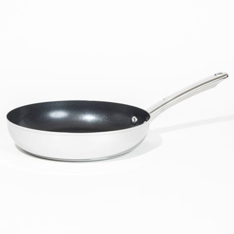 焦げ付きにくいノンステイック加工と熱くなりにくい中空ハンドル。