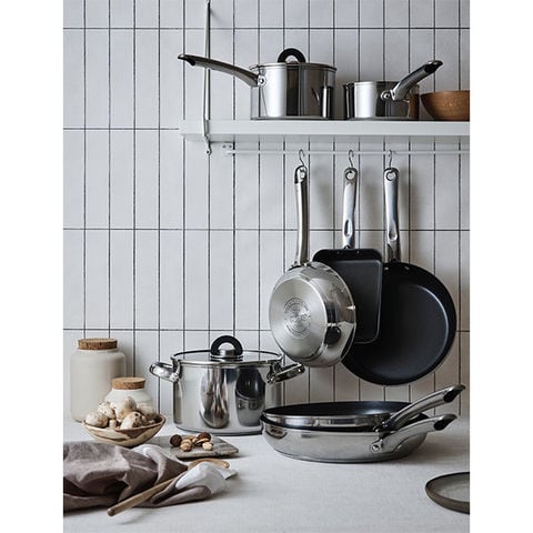 | 素材 | 本体: ステンレス鋼 底: アルミニウム+ステンレス鋼(はり底 底の厚さ4.0mm) 取手: ステンレス鋼 外面加工: ミラー加工 内面加工: ふっ素樹脂塗膜加工(PFOAフリー) |