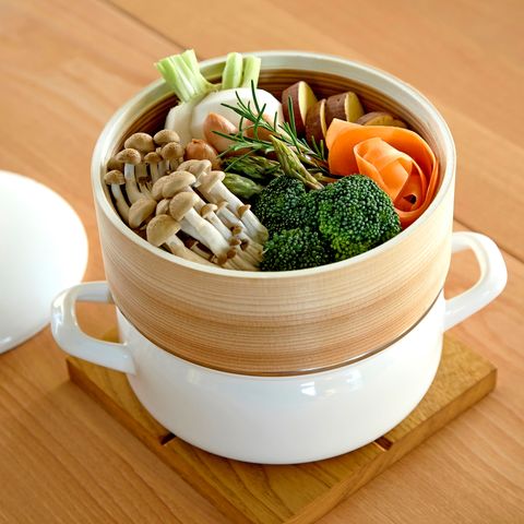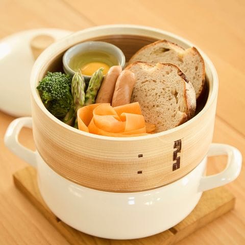 せいろ蒸しは蒸気で加熱する調理法で、素材本来の味が際立ちます。素材の天然木と竹が調理中の余分な水気を適度に吸収し、蒸気が食材をやさしく包み込むように、ふんわりと蒸し上げます。本格的な蒸し料理をお楽しみいただけます。蒸籠には、シリコンマットが付いています。