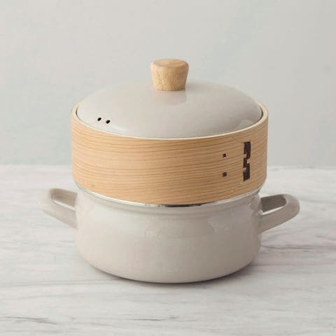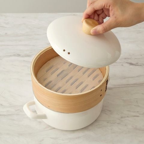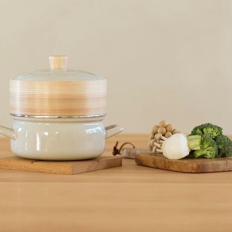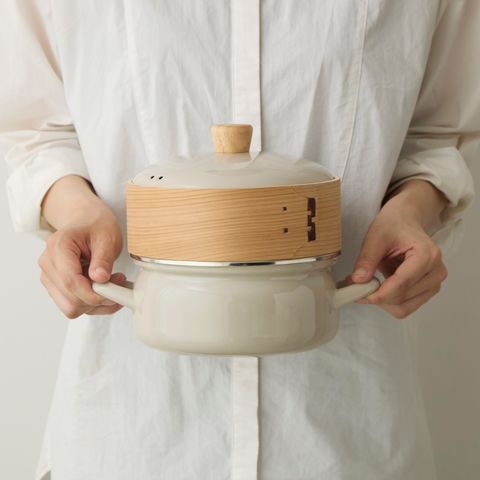 | 素材 | 両手鍋18cm:ほうろう用鋼板 せいろ:天然木・竹 |