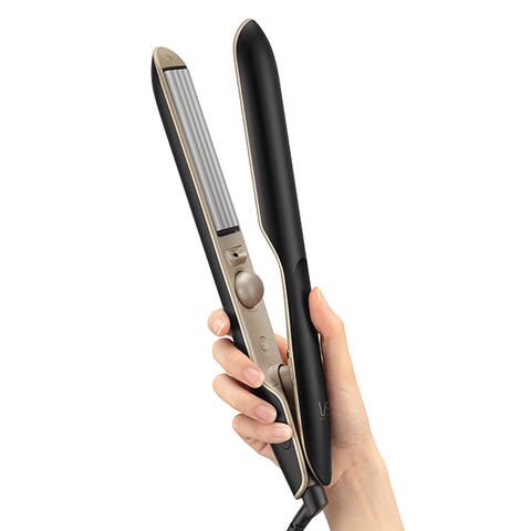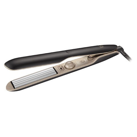 髪への接触面積を減らす溝のついたプレートで、髪の負担を少なくヘアセットが可能。