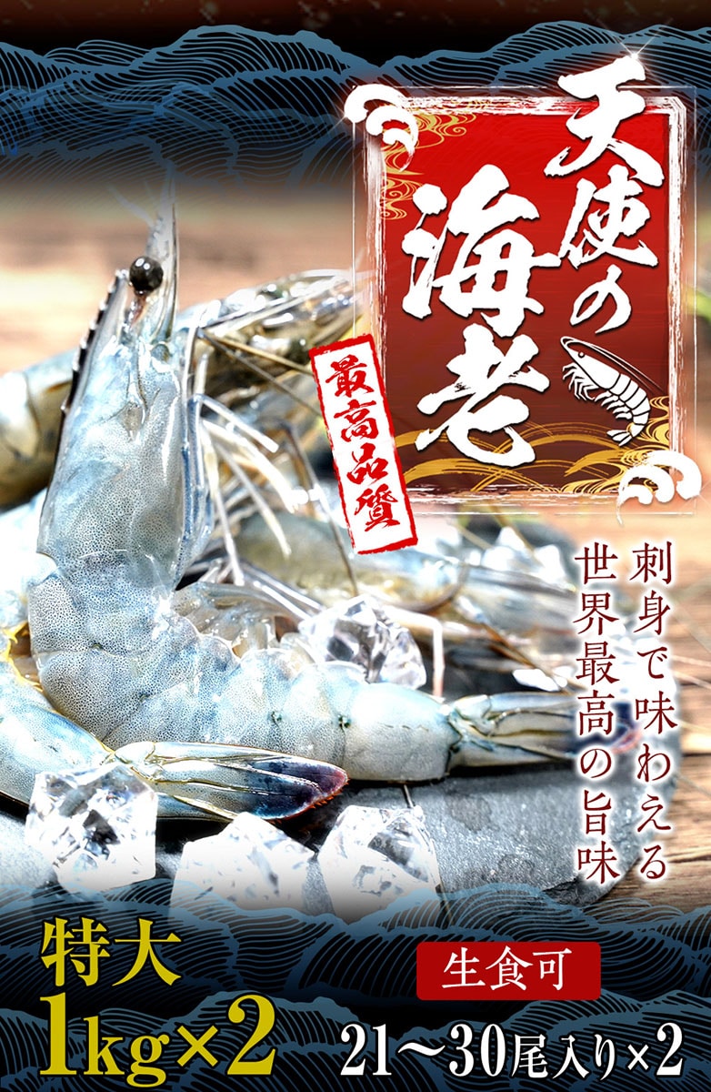 天使の海老 特大サイズ 1kg×2P 海鮮 有頭 特大サイズ お取り寄せ お試し 世界最高品質 刺身 生食 冷凍 高級 BBQ