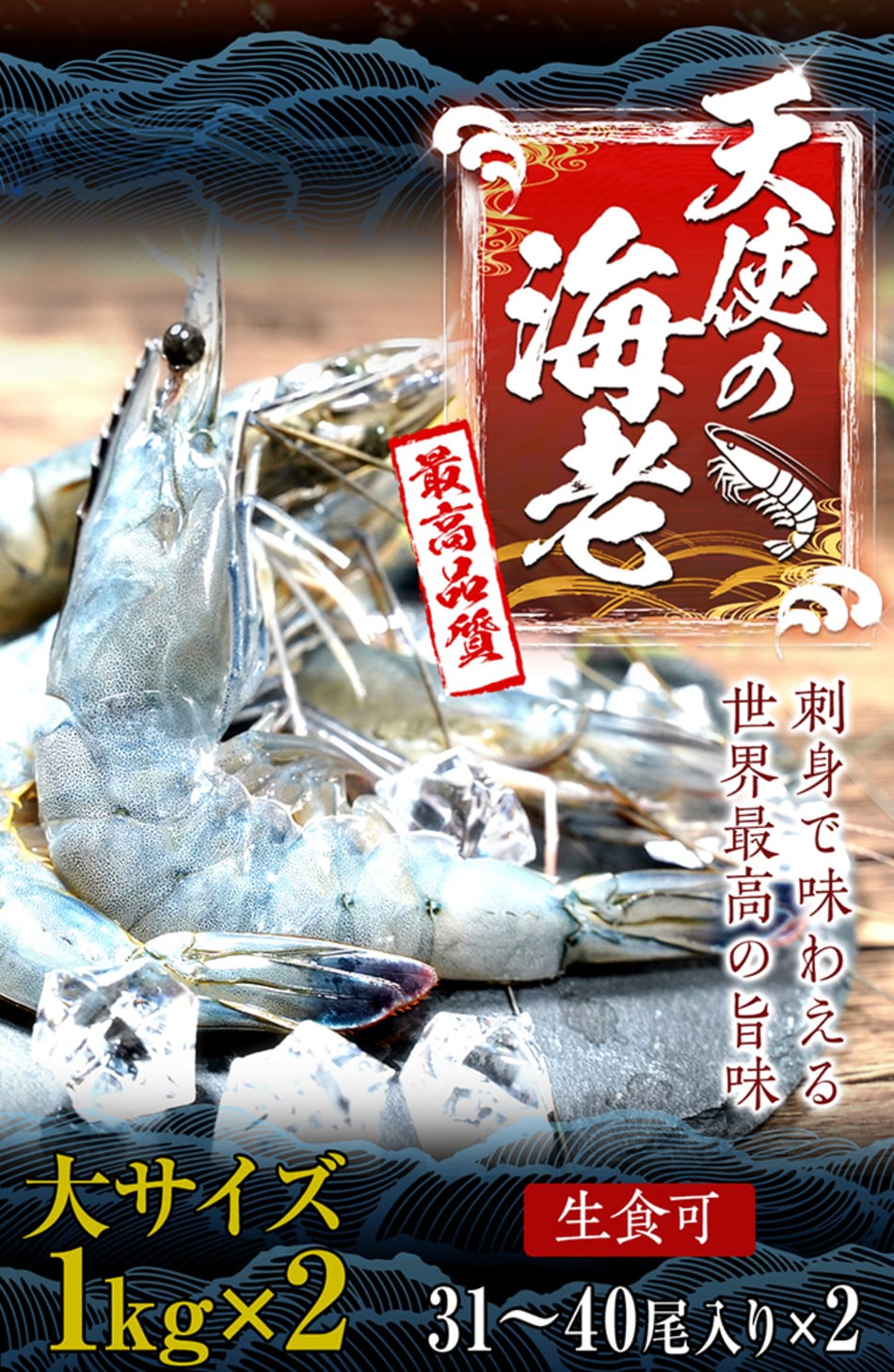 天使の海老 大サイズ2kg 海鮮 有頭 食べごろサイズ お取り寄せ お試し 世界最高品質 刺身 生食 高級 BBQ