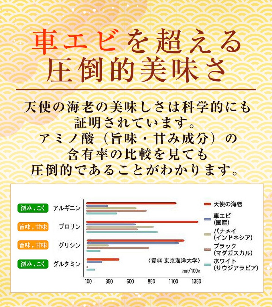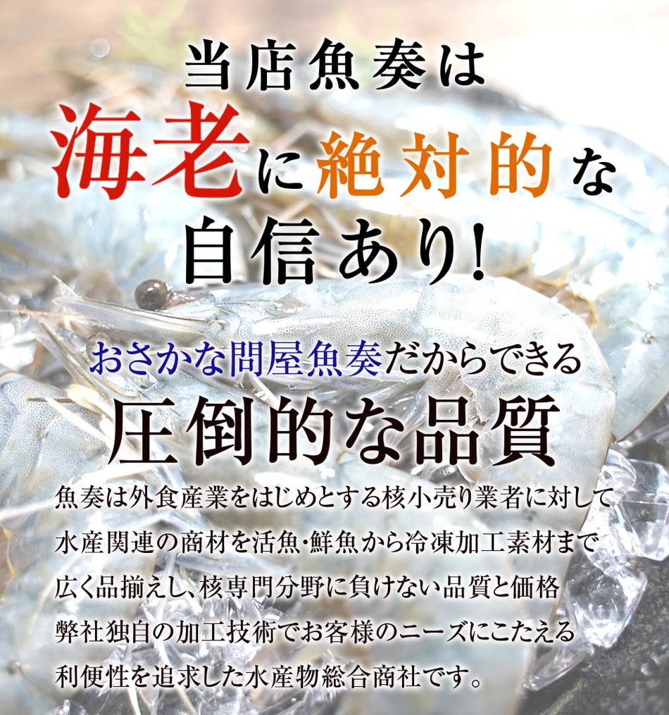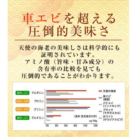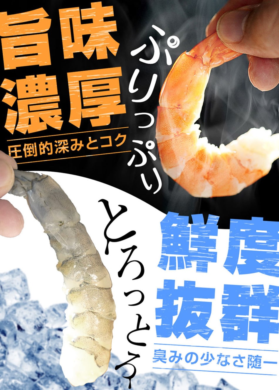 旨味の濃さは高級海老の車エビを超える大サイズのボリュームある商品です。
