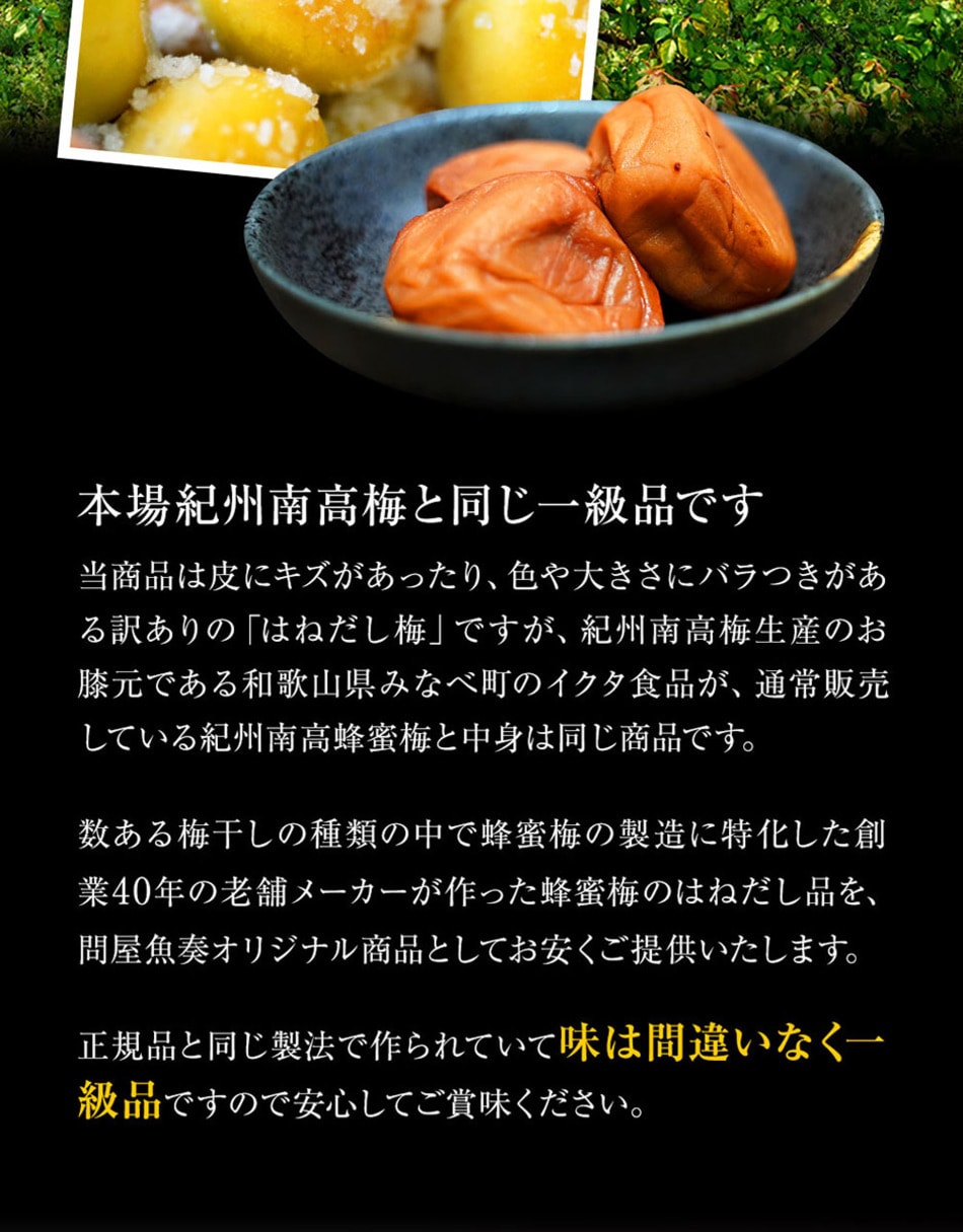 紀州南高梅使用はねだし梅 はちみつ梅 700g 塩分8% 追跡可能ネコポス 梅干し つぶれ梅 お取り寄せ お試し メール便