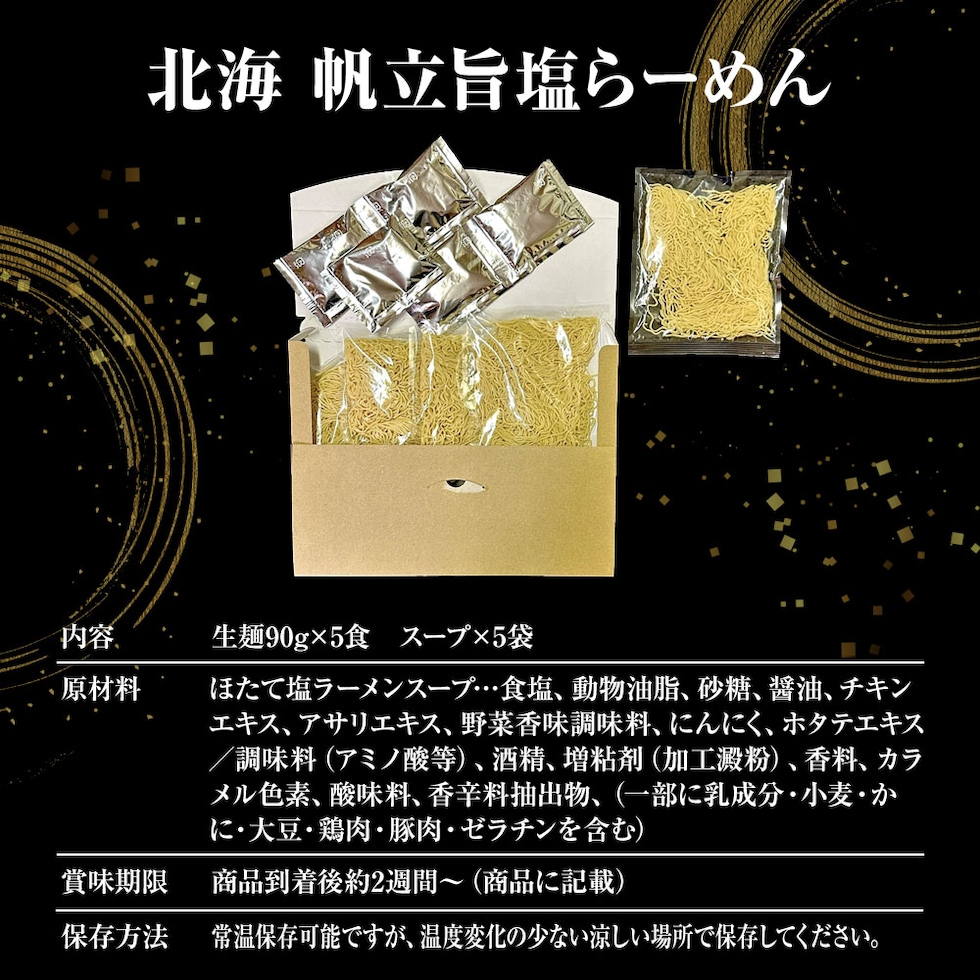 【セット内容】生麺90g×5食 帆立旨塩スープ×5袋