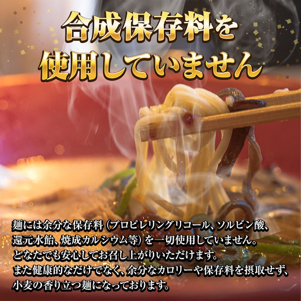 こだわりの生麺に合成保存料は一切使用しておりません。