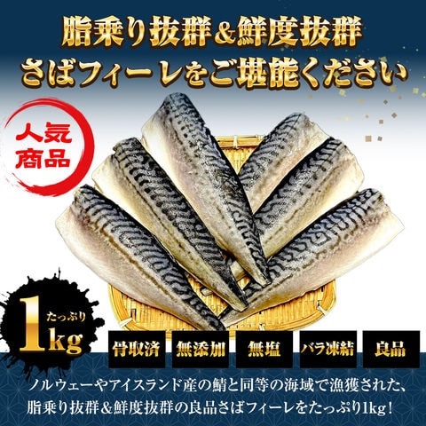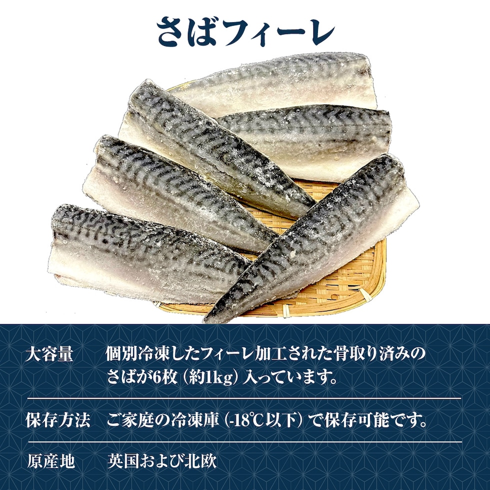サバ さば 鯖 骨取りサバ 無塩 無添加 鯖半身フィーレ 6枚(約1kg) 良品 骨なし 個別冷凍 骨取り鯖 ノルウェー産 英国産 送料無料