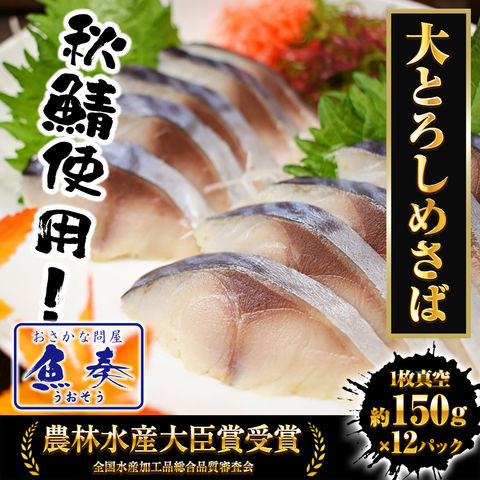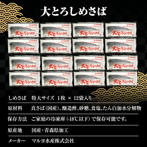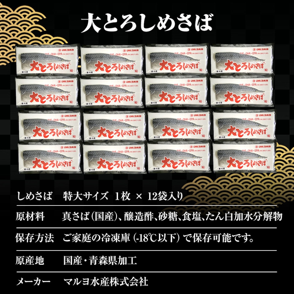 大とろしめさば 12パック(1枚真空・特大サイズ 約150~200g) 締めさば 〆さば 鯖 サバ 大トロ 母の日 父の日 敬老 中元 ギフト