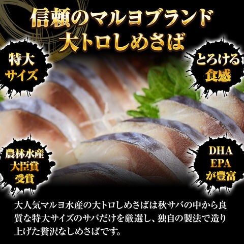 大人気マルヨ水産の大トロしめさばは秋サバの中から良質な特大サイズのサバだけを厳選し、独自の製法で造り上げた贅沢なしめさばです。
