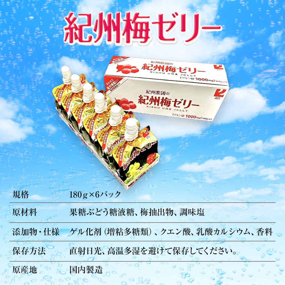 紀州農園 紀州梅ゼリー 180g 1箱(6本入) うめ ウメ 梅 梅干 南高梅 うめぼし ウメボシ 熱中症対策 母の日 父の日 敬老 中元 ギフト