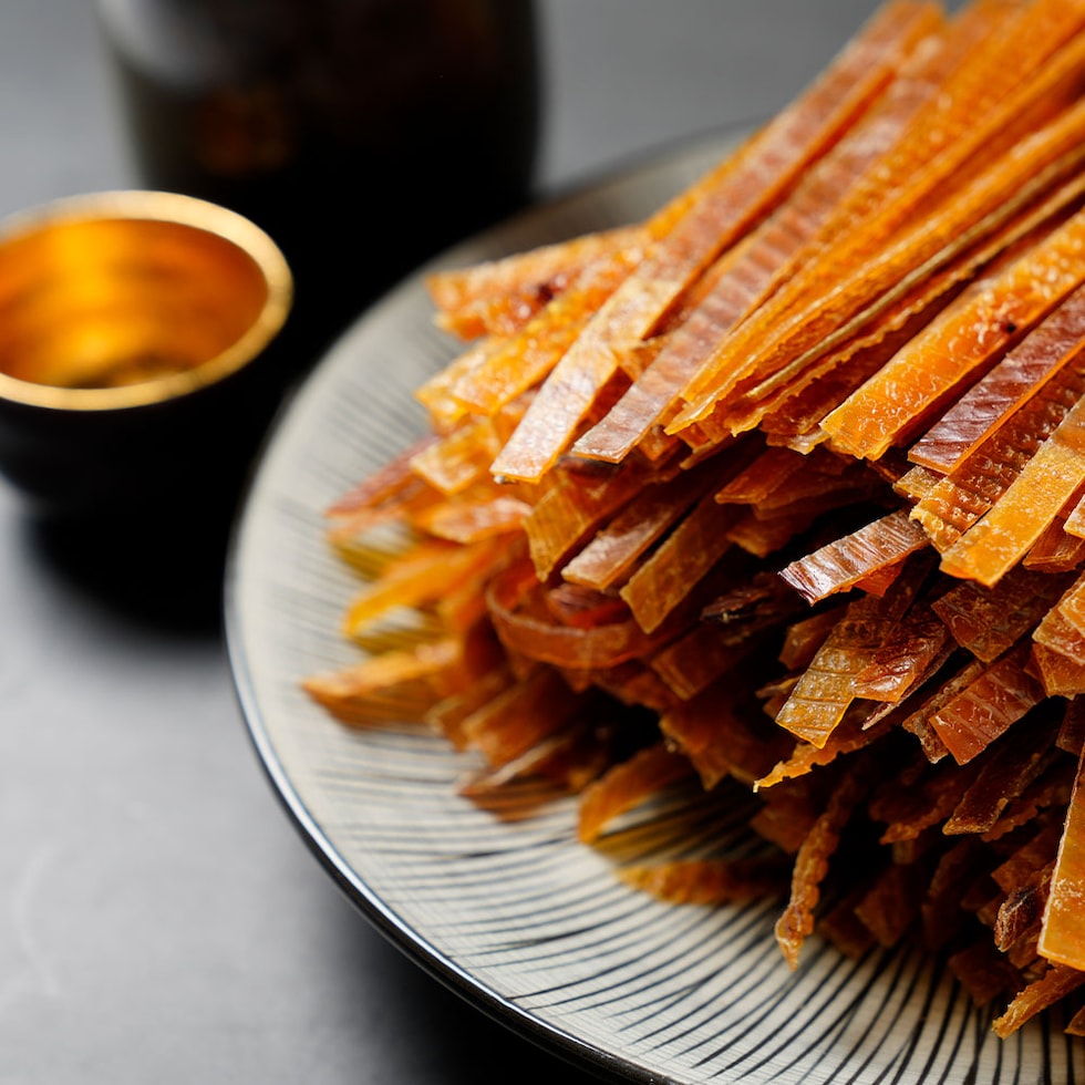 素材本来の旨味をいかした素朴な味わいのするめジャーキーは、炙り焼きの香ばしい風味と食感で大満足です。