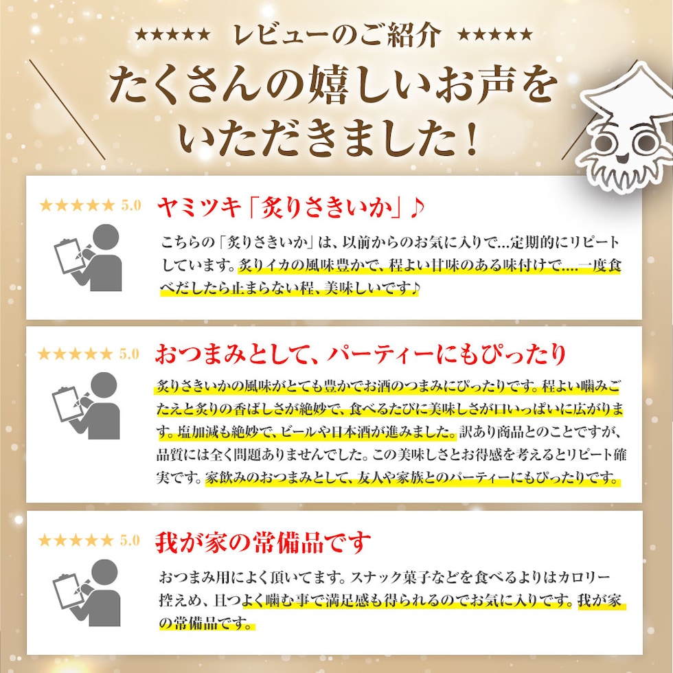 【原材料名】いか、砂糖、食塩、ソルビトール、調味料(アミノ酸等)、酸味料