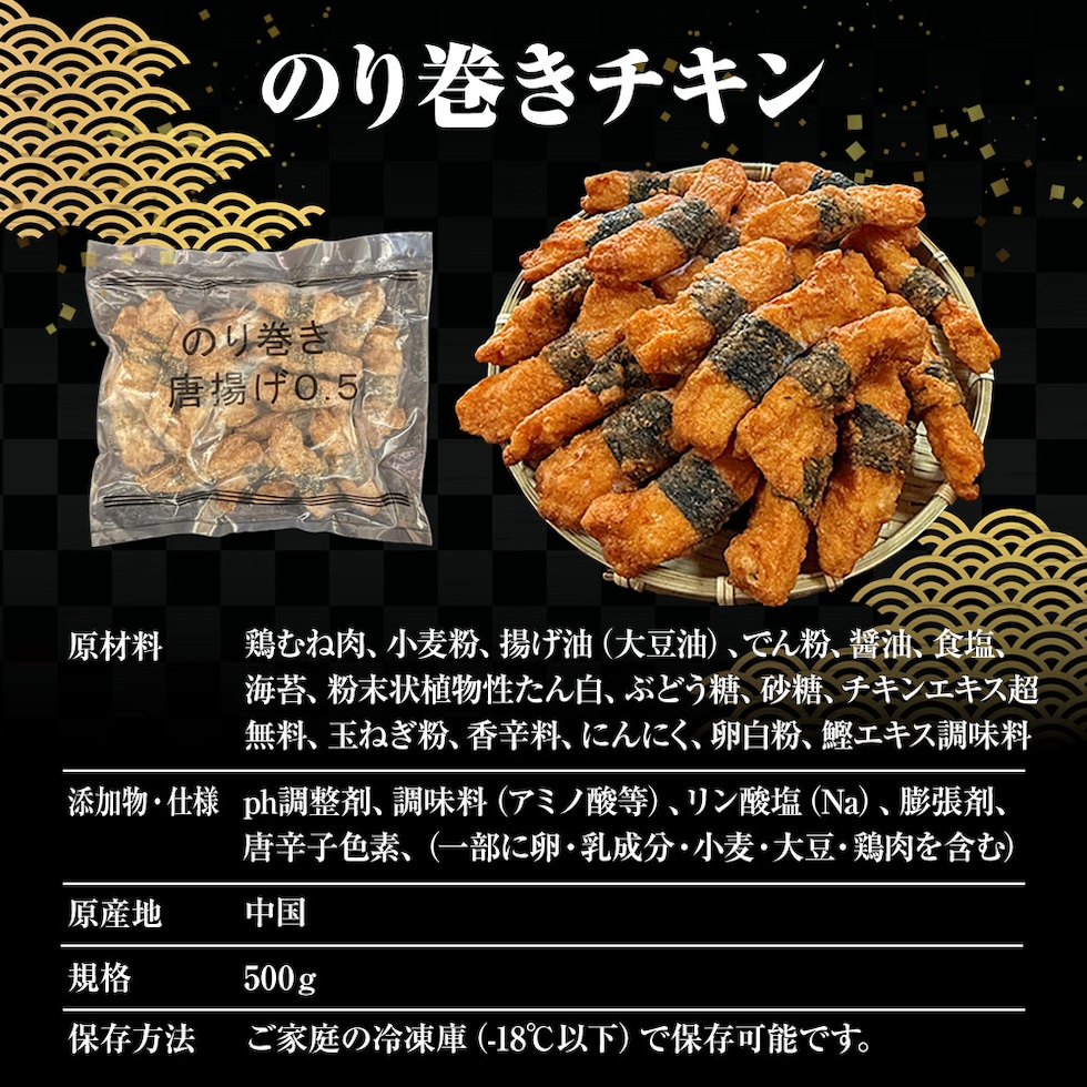 のり巻きチキン 500g むね肉 唐揚げ 海苔巻き唐揚げ とり トリ 鶏むね肉 カラアゲ 鶏 土用丑 中元 ギフト スタミナ 取寄せ
