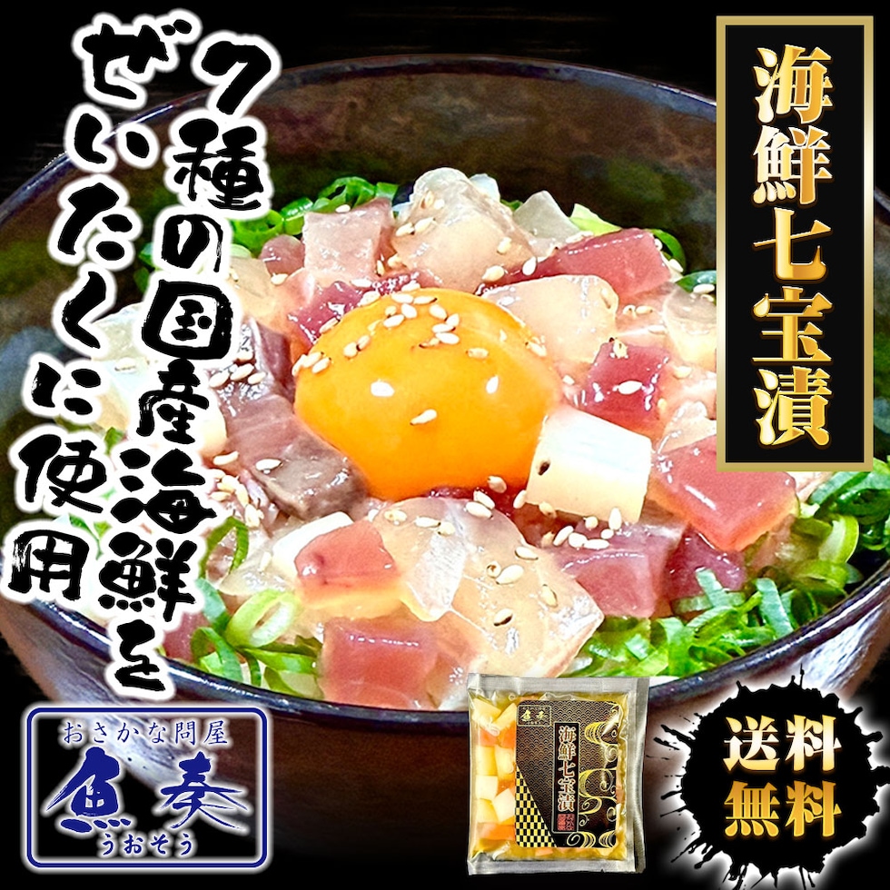 新鮮な海鮮具材が贅沢に7種類入った魚奏オリジナルの海鮮丼の具です。