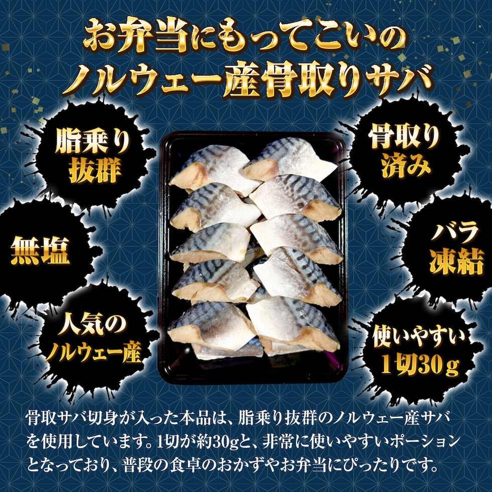 無塩 骨取り さば 切身(30g×20切) さば サバ 切り身 弁当 朝食 天然もの ポイント利用 お試し商品 サンプル
