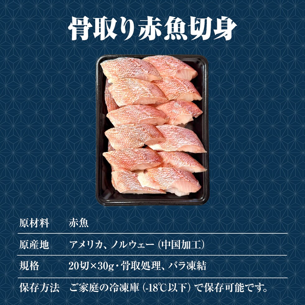 無塩 骨取り 赤魚切身(30g×20切) あかうお アカウオ 赤魚 切り身 弁当 煮付け 塩焼 中元 ギフト 父の日 ボーナス 取寄せ