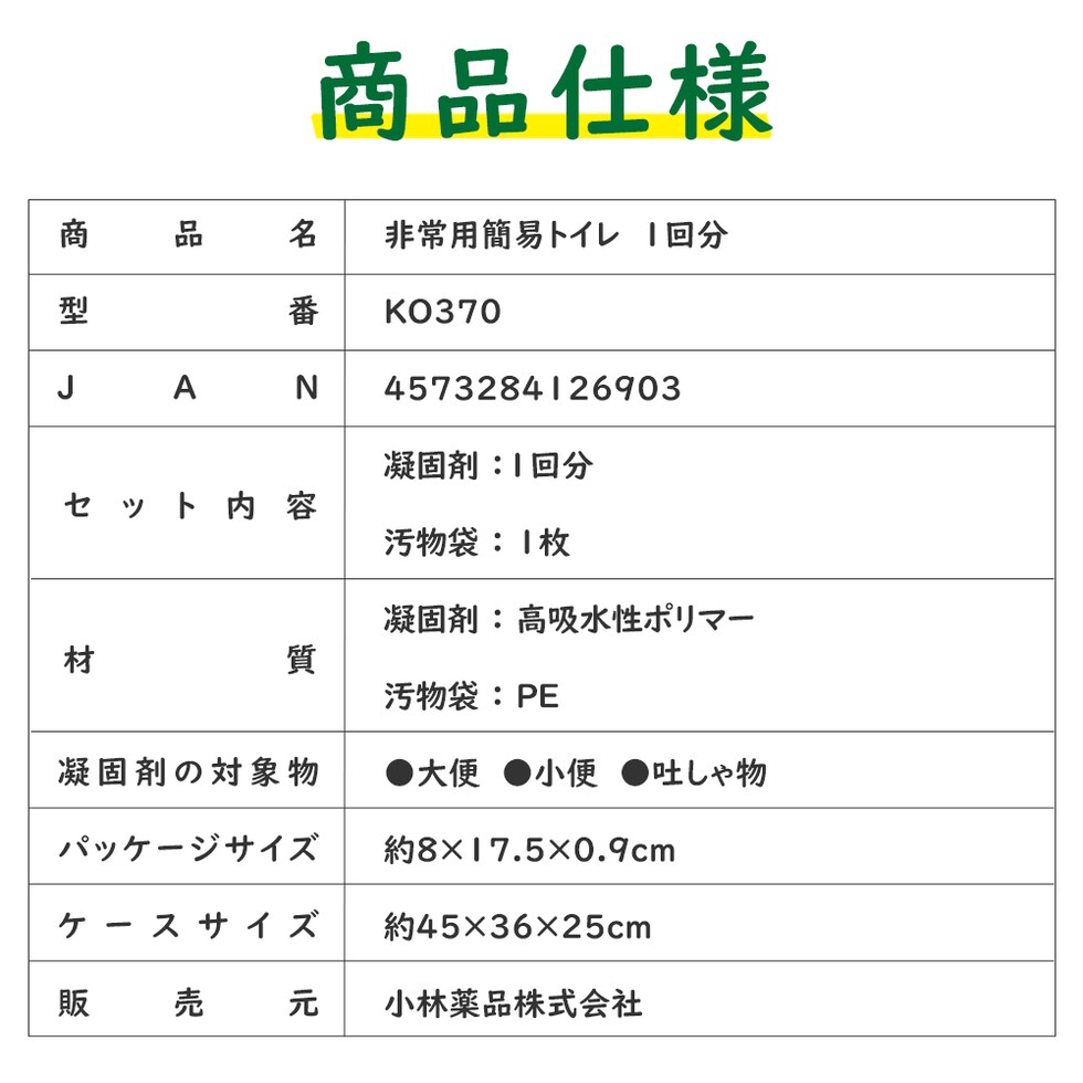 非常用トイレ 1回分 KO370 簡易トイレ 15年以上保存 汚物袋付き 仮設トイレ 非常時 災害時 防災グッズ 防災セット 非常持ち出し袋 非常持出袋 避難セット 組立トイレ 断水 備蓄品 帰宅困難者対策 防災用(メール便20個までOK)