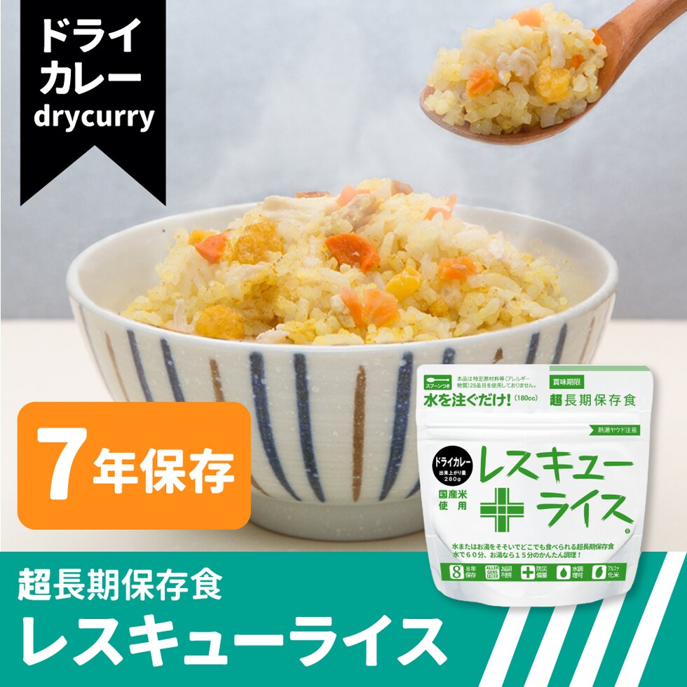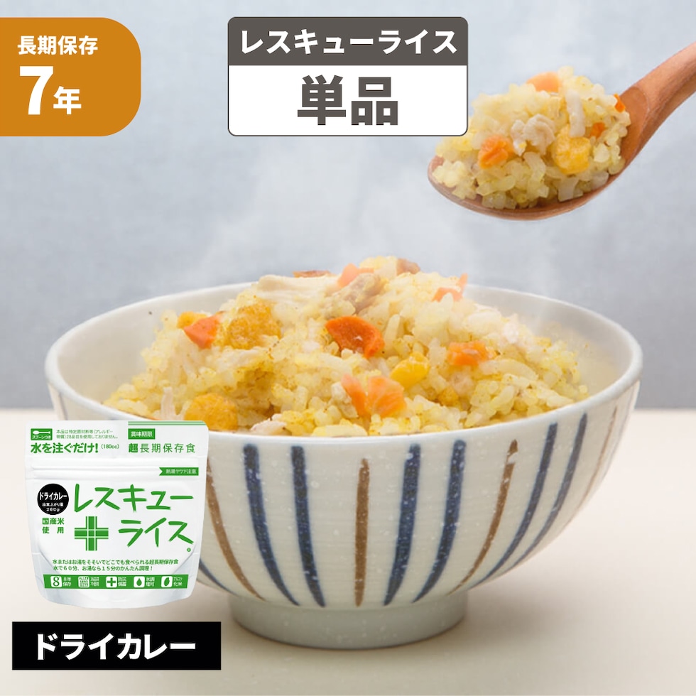 非常食 7年保存 レスキューライス ドライカレー 単品 国産米使用(アルファ米 アルファー米 保存食 非常食 保存食 防災用品 備蓄品 長期保存食 帰宅困難者対策 災害備え) 【メール便4食までOK】