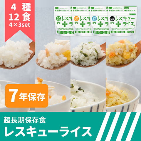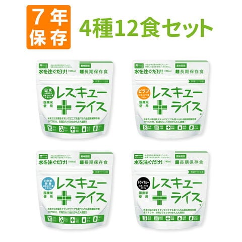 非常食セット 7年保存 アルファ米 4種類 12食セット レスキューライス 白米/わかめ/ピラフ/ドライカレー 国産米使用 アルファ化米 お米 ご飯 保存食 防災食 まとめ買い 防災グッズ 防災セット 防災用品 備蓄品 長期保存食
