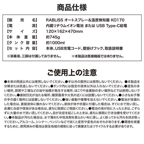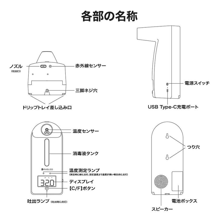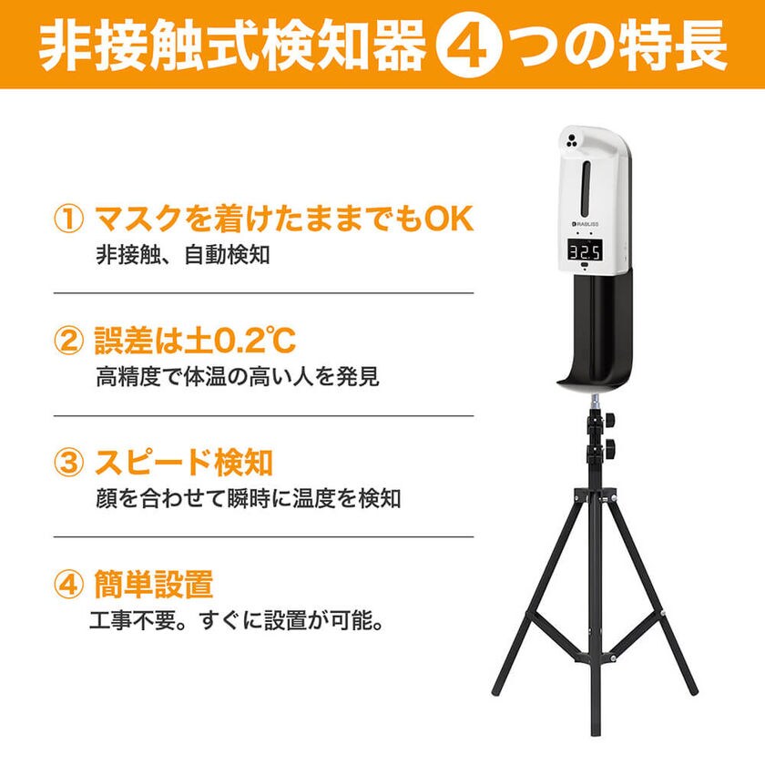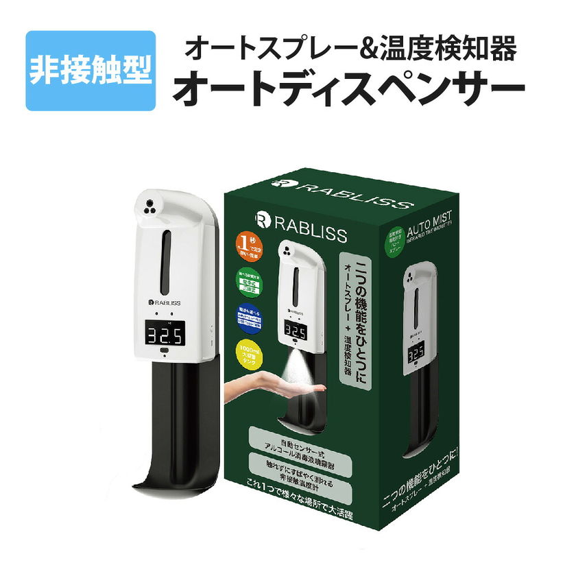 自動温度検知器 一体型 アルコール ディスペンサー 自動 検温 オート 消毒 大容量1000ml 壁掛/三脚 両対応 日本語説明書付・1年保証 アルコール自動噴霧器 非接触 検知器 温度計 業務用 法人