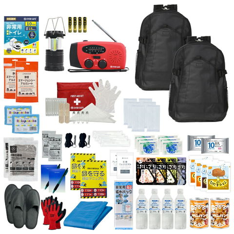 3日間を生き延びる 防災セット 2人用 ブラック/ブラック 防災リュック 防災グッズ 防災ラジオ 非常食 保存水 防災士監修 簡易トイレ 救急セット 衛生用品 避難 帰宅困難者 非常用持ち出し袋 軽量 コンパクト EVERSAFE IK02