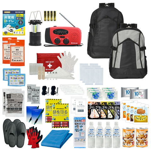 3日間を生き延びる 防災セット 2人用 ブラック/グレー 防災リュック 防災グッズ 防災ラジオ 非常食 保存水 防災士監修 簡易トイレ 救急セット 衛生用品 避難 帰宅困難者 非常用持ち出し袋 軽量 コンパクト EVERSAFE IK02