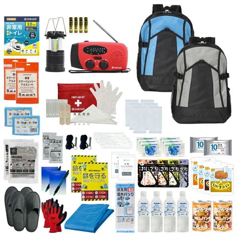 3日間を生き延びる 防災セット 2人用 ブルー/グレー 防災リュック 防災グッズ 防災ラジオ 非常食 保存水 防災士監修 簡易トイレ 救急セット 衛生用品 避難 帰宅困難者 非常用持ち出し袋 軽量 コンパクト EVERSAFE IK02