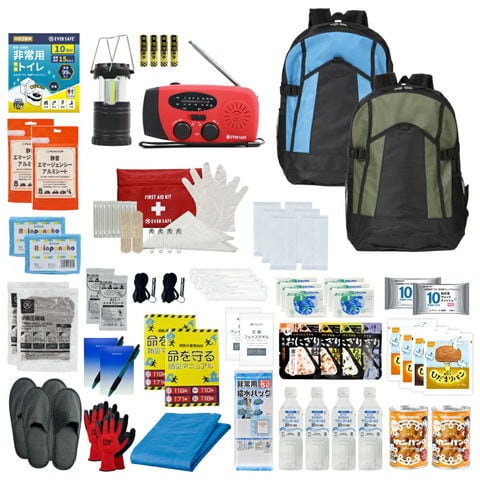 3日間を生き延びる 防災セット 2人用 ブルー/カーキ 防災リュック 防災グッズ 防災ラジオ 非常食 保存水 防災士監修 簡易トイレ 救急セット 衛生用品 避難 帰宅困難者 非常用持ち出し袋 軽量 コンパクト EVERSAFE IK02