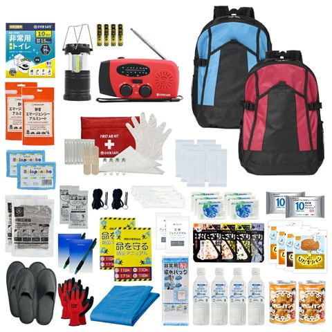 3日間を生き延びる 防災セット 2人用 ブルー/ワイン 防災リュック 防災グッズ 防災ラジオ 非常食 保存水 防災士監修 簡易トイレ 救急セット 衛生用品 避難 帰宅困難者 非常用持ち出し袋 軽量 コンパクト EVERSAFE IK02