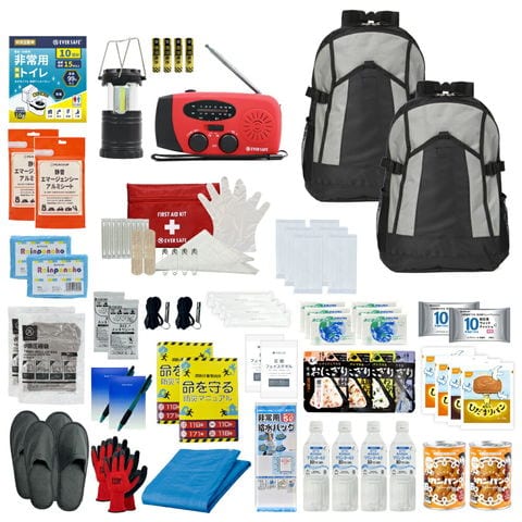 3日間を生き延びる 防災セット 2人用 グレー/グレー 防災リュック 防災グッズ 防災ラジオ 非常食 保存水 防災士監修 簡易トイレ 救急セット 衛生用品 避難 帰宅困難者 非常用持ち出し袋 軽量 コンパクト EVERSAFE IK02