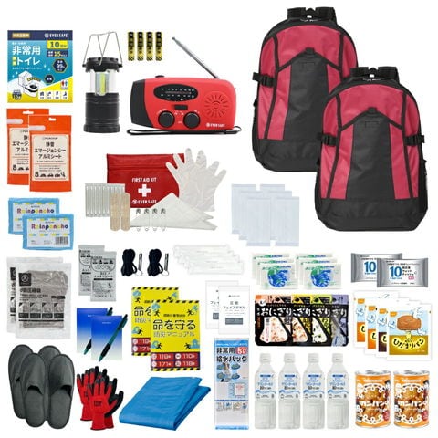 3日間を生き延びる 防災セット 2人用 ワイン/ワイン 防災リュック 防災グッズ 防災ラジオ 非常食 保存水 防災士監修 簡易トイレ 救急セット 衛生用品 避難 帰宅困難者 非常用持ち出し袋 軽量 コンパクト EVERSAFE IK02