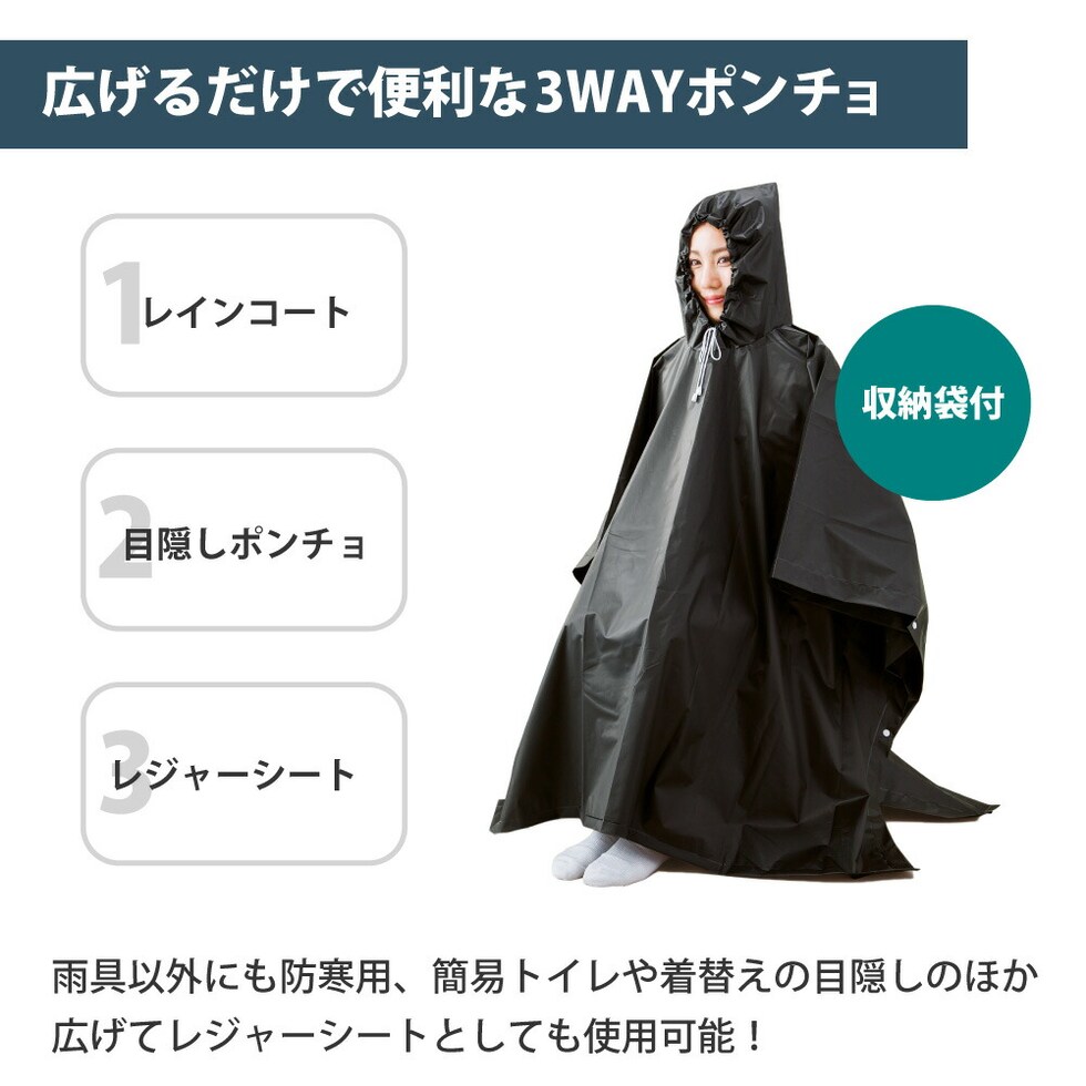 目隠し、雨除け、防寒、簡易なレジャーシートにもなるポンチョ