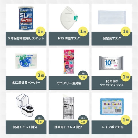 | 簡易トイレ1回分 | 2 | 凝固剤/排便処理袋付 水不要 可燃ごみとして処分可能 保存期間15年以上 |