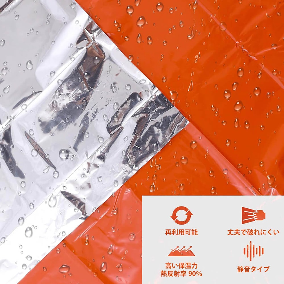防災グッズ 静音エマージェンシーアルミ寝袋 [メール便4個までOK] PEACEUP 再収納可能 丈夫でカサカサ音が少ない 防寒・防風 サバイバル アルミシート スリーピングバッグ 保温 断熱