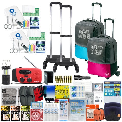 防災セット 2人用 キャリー付き 47L ビッグリュック ブルー レッド L4BRCR02 キャリーカート 防災士監修 防災リュック 大容量 非常食 保存水 キャスター 2way 防災ラジオ 簡易トイレ 救急セット 懐中電灯 衛生用品 警戒レベル4 避難