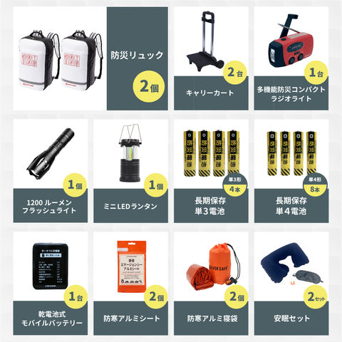 | 防災リュック | 2 | サイズ:(約)幅360×高540×マチ155mm 本体重量:(約)948g 容量:(約)30L ※発送時期によっては、ロゴが異なる場合があります。 |