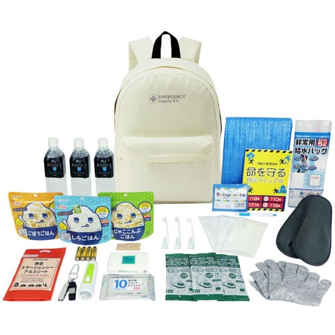 防災セット 1人用 30点 (リュック:ベージュ) 避難セット 防災士監修 非常食 おしゃれ 9カラー ピースアップ PBS30 防災グッズ 防災リュック 防災食 5年保存 10年保存水 非常用 簡易トイレ 地震 災害 帰宅困難者 ライト 懐中電灯 レディース メンズ
