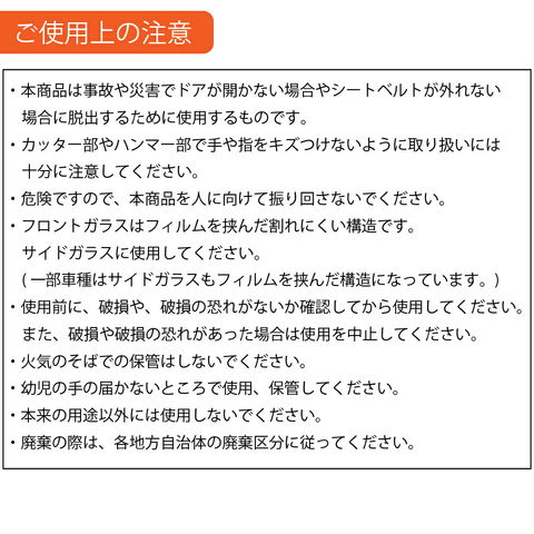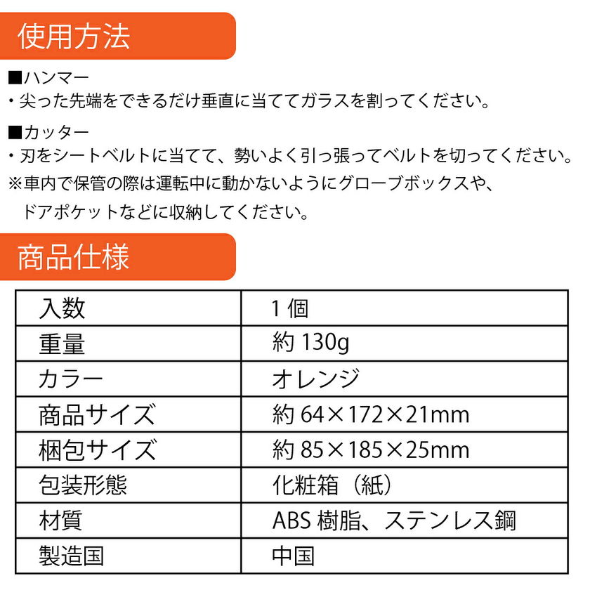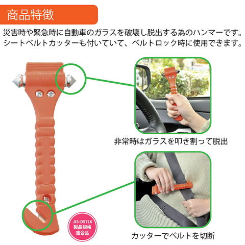 車載用 緊急脱出用ハンマー ガラスハンマー シートベルトカッター (車載用 緊急脱出ツール 交通事故 緊急避難セット 防災グッズ 防災セット 防災用品)