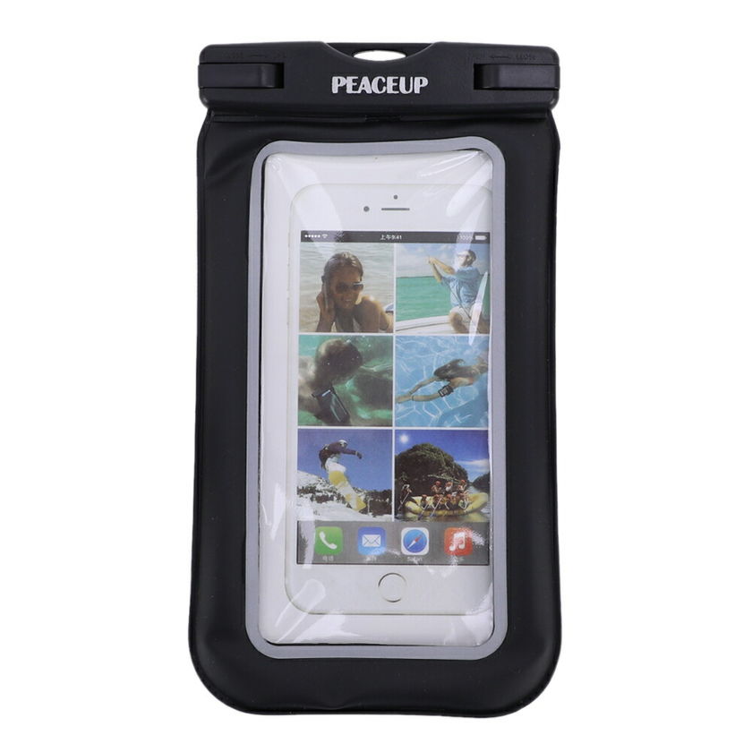 PEACEUP ブラック 浮く 防水ケース ほぼ6inch以下 スマホケース 指紋認証 IPX8 防水最高レベル ネックストラップ付 防水バッグ ドライバッグ 防水ポーチ スマホケース (メール便送料無料(2個まで))