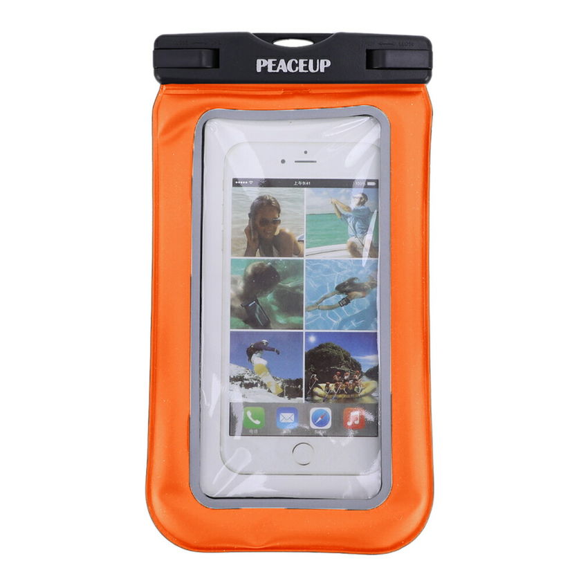 PEACEUP オレンジ 浮く 防水ケース ほぼ6inch以下 スマホケース 指紋認証 IPX8 防水最高レベル ネックストラップ付 防水バッグ ドライバッグ 防水ポーチ スマホケース (メール便送料無料(2個まで))