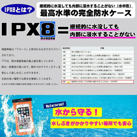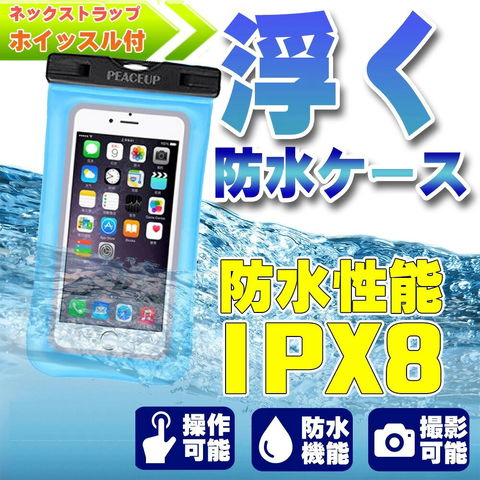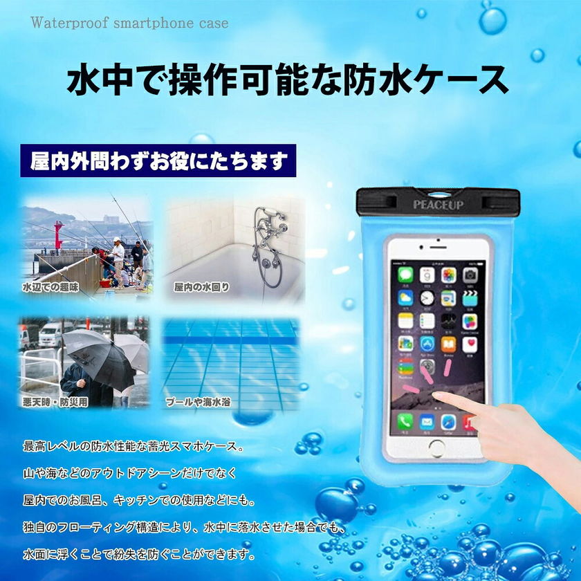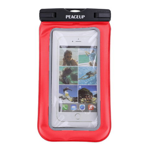 PEACEUP レッド 浮く 防水ケース ほぼ6inch以下 スマホケース 指紋認証 IPX8 防水最高レベル ネックストラップ付 防水バッグ ドライバッグ 防水ポーチ スマホケース (メール便送料無料(2個まで))