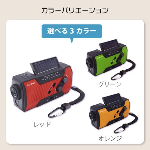 エマージェンシーラジオ BR001 電池付 (オレンジ) 多機能防災ラジオライト 【10年保存電池付き】タイプ別USBコネクタ付 LEDライト ソーラー充電 AM/FM ワイドFM サイレン 3カラー 手回し ダイナモ 非常用 停電 単品のレビュー