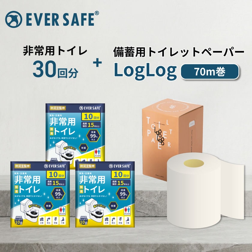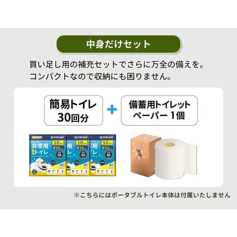 中身だけセット 非常用トイレ30回分 + 備蓄用トイレットペーパー 長期保存 簡易トイレ 消耗品のみ 防災グッズ 非常用 災害用 補充 介護 車載 携帯トイレ 断水 企業 団体 EVERSAFE