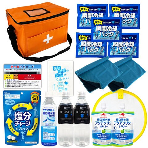 熱中症対策キットDX17点 (オレンジ) 1セット 熱中症対策用品 暑さ対策 クーラーバッグ 瞬間冷却剤 ゼリー ドリンク 塩分チャージ タブレット 工事現場 農作業 経口補水液 熱中症対策グッズ コンパクト 熱中症予防カード スポーツ アウトドア 塩分補給 ATDX001 PEACEUP